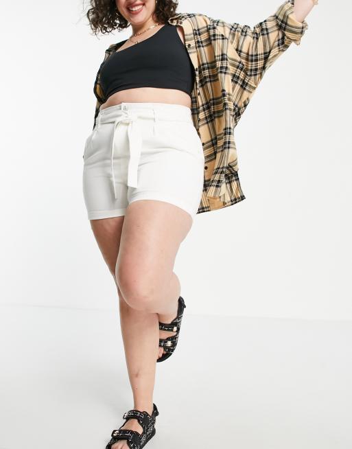 NEW 2022 Look WHITE Paperbag PLUS Size SHORTS High Waist PAPER BAG Shorts Very well made.