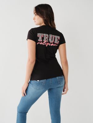 True Religion Brand Jeans Women s Crystal and Foil Stamp Logo Tee Very well made.