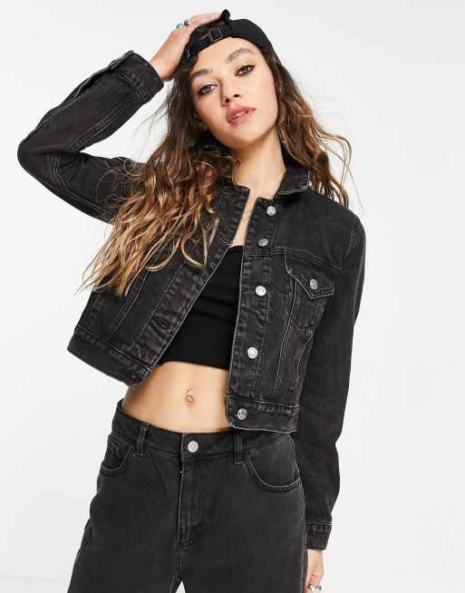 Topshop sinner cotton denim jacket in washed black BLACK Very well made.