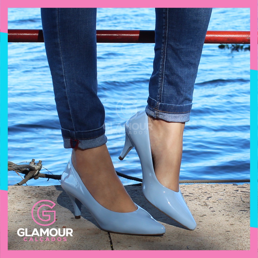 Scarpin Feminino Azul Claro Bico Fino Loja Santa F Cal ados Very well made.