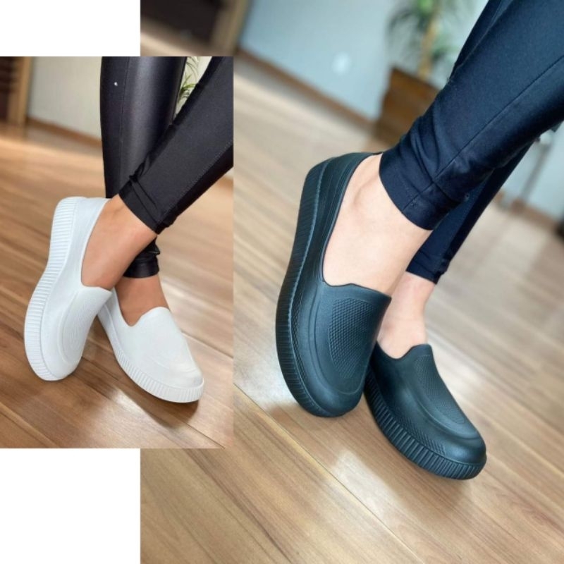 Sapato Fechado de Pl stico Injetado Preto e Branco Sapato Very well made.