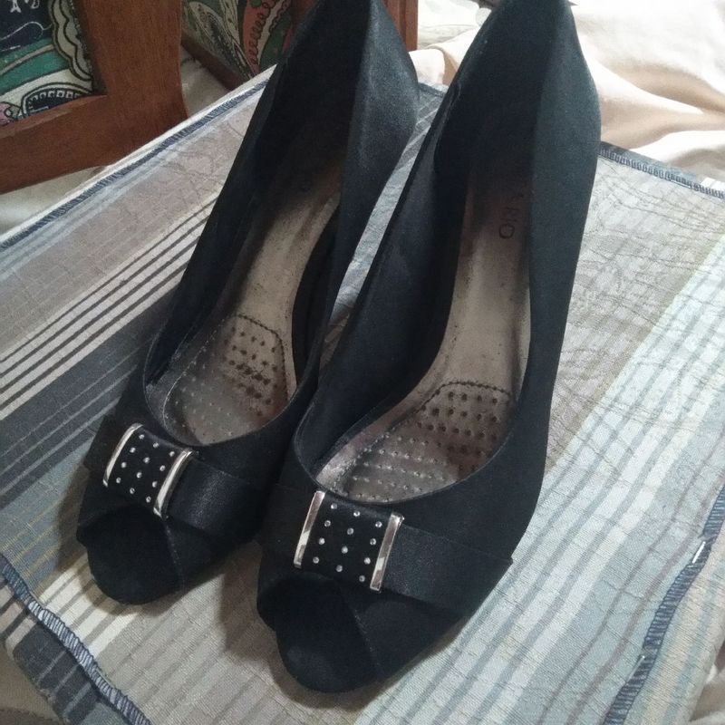 Sapato Salto Alto Preto Glitter Festa Scarpin Tecido com Brilho Very well made.