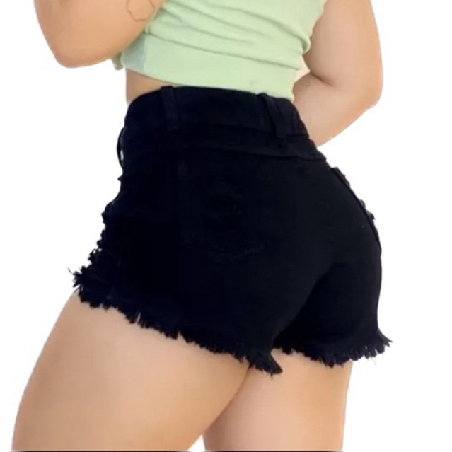Shorts Jeans Feminino Preto Rasgado e desfiado Cintura Alta Ver o Very well made.