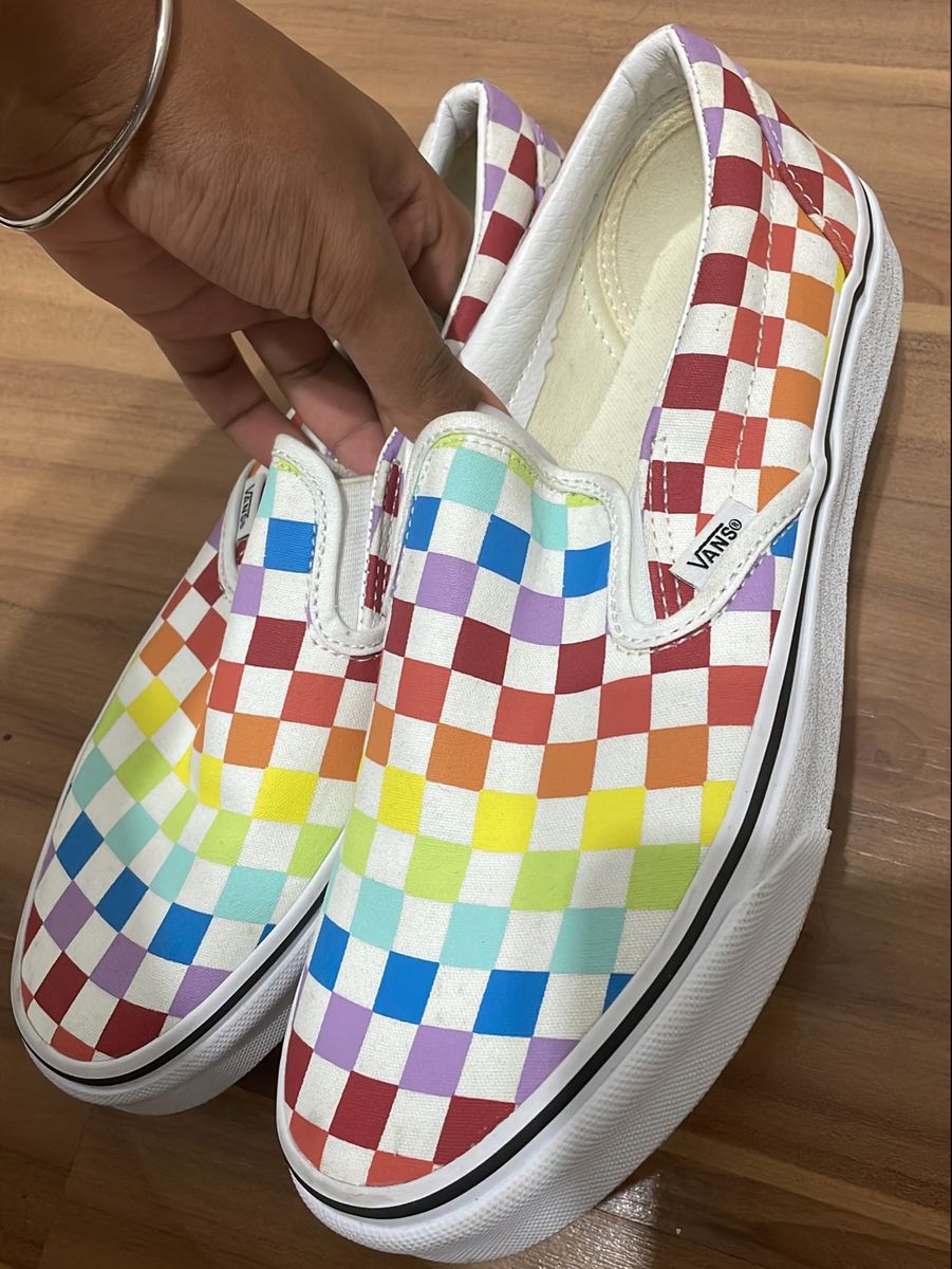 Tenis Vans Checkerboard Slip on V Xadrez Colorido Infantil Very well made.
