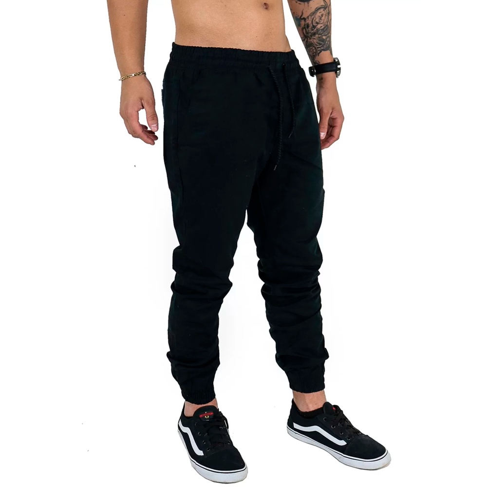 Cal a Masculina Jogger Boca Apertada Elastano Estilo Jogador Cor Preto Very well made.