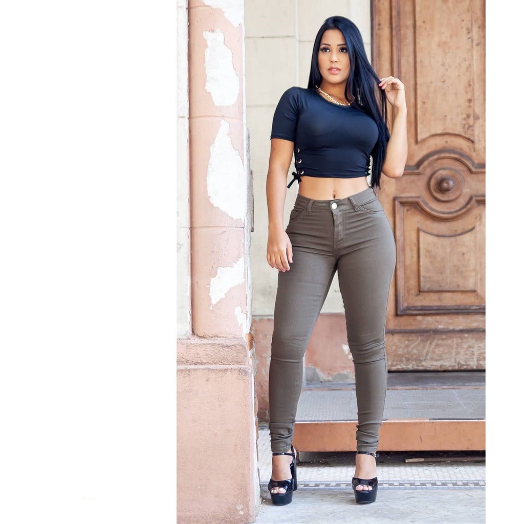 Cal a Jeans Feminina Verde Militar Cintura Alta Shopee Brasil Very well made.