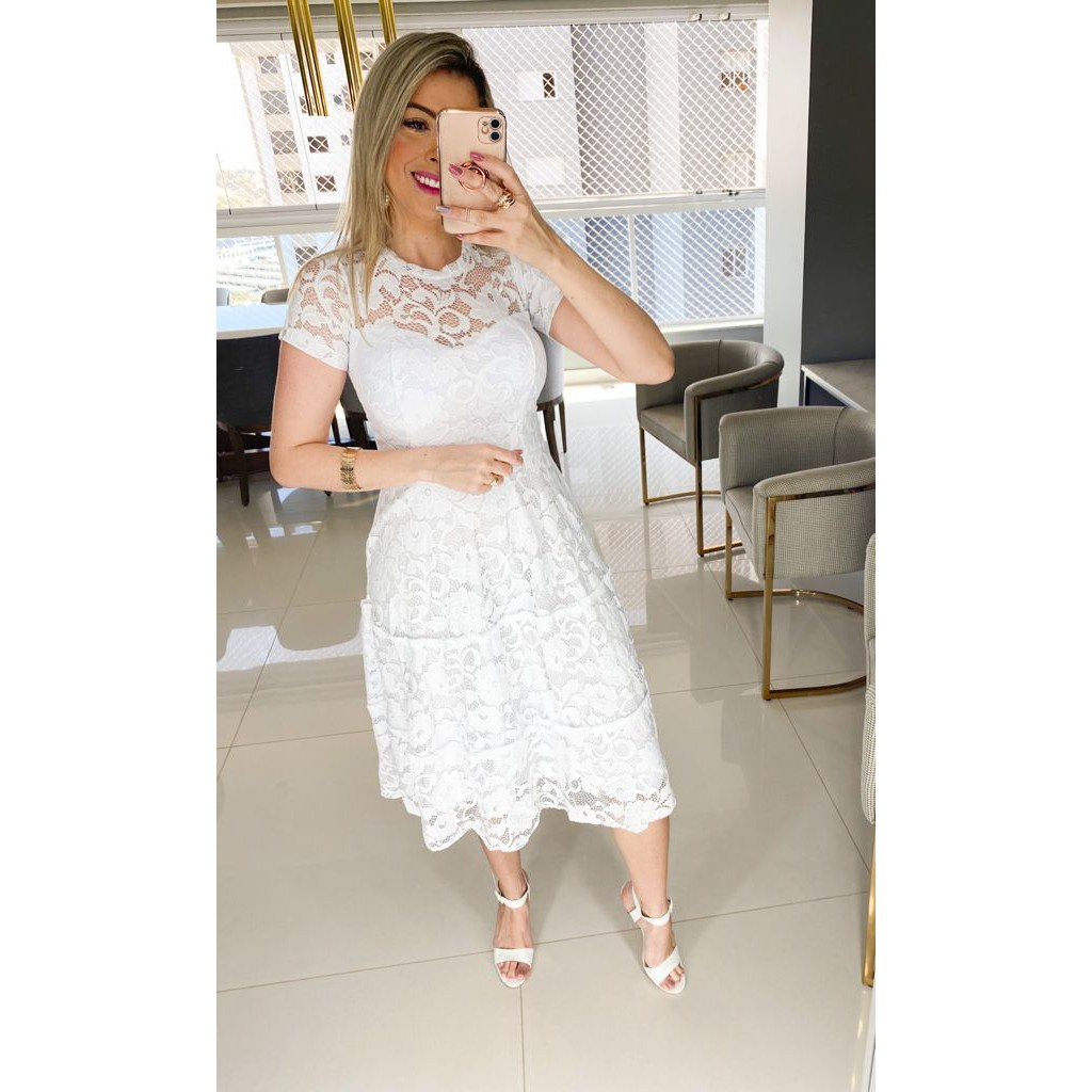 Vestido De Festa Branco Rodado Evas Midi Formaturas Luxuoso Renda Very well made.