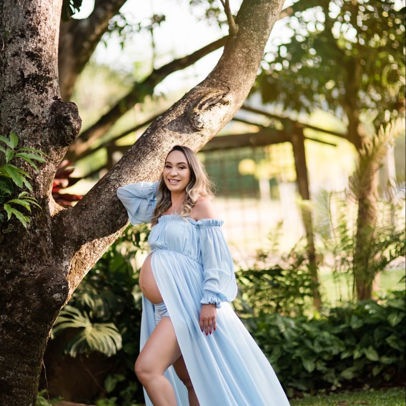 Vestido Gestante Azul Claro para Ensaio Fotogr fico Vestido Feminino Amada M e Usado 83419020 enjoei Very well made.
