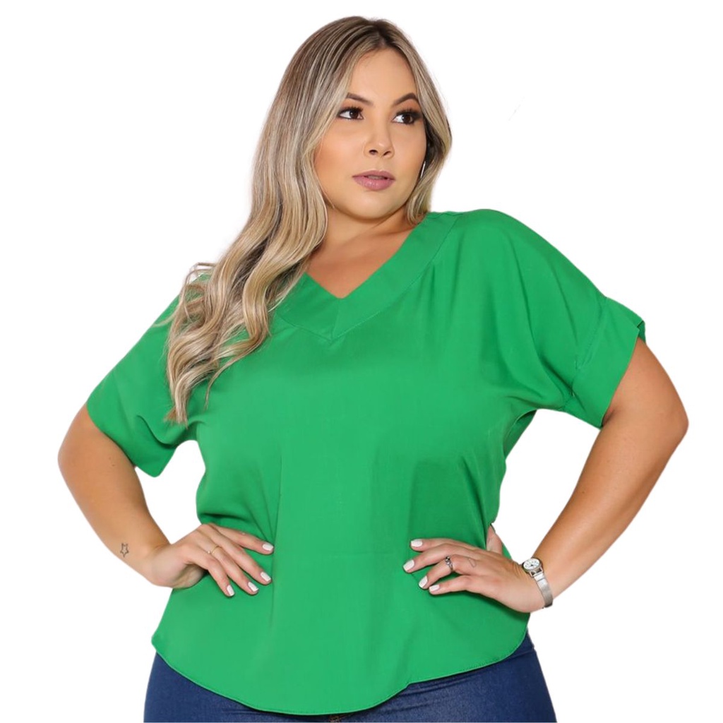 Blusa Feminina Plus Size Manga Curta Barra El stico Verde Claro Very well made.