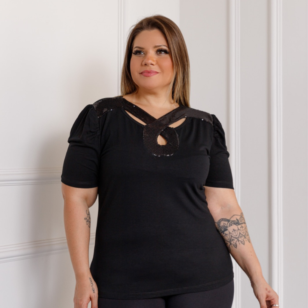 Blusa Plus Size B rbara Manga Curta Program Moda Moda Plus Very well made.