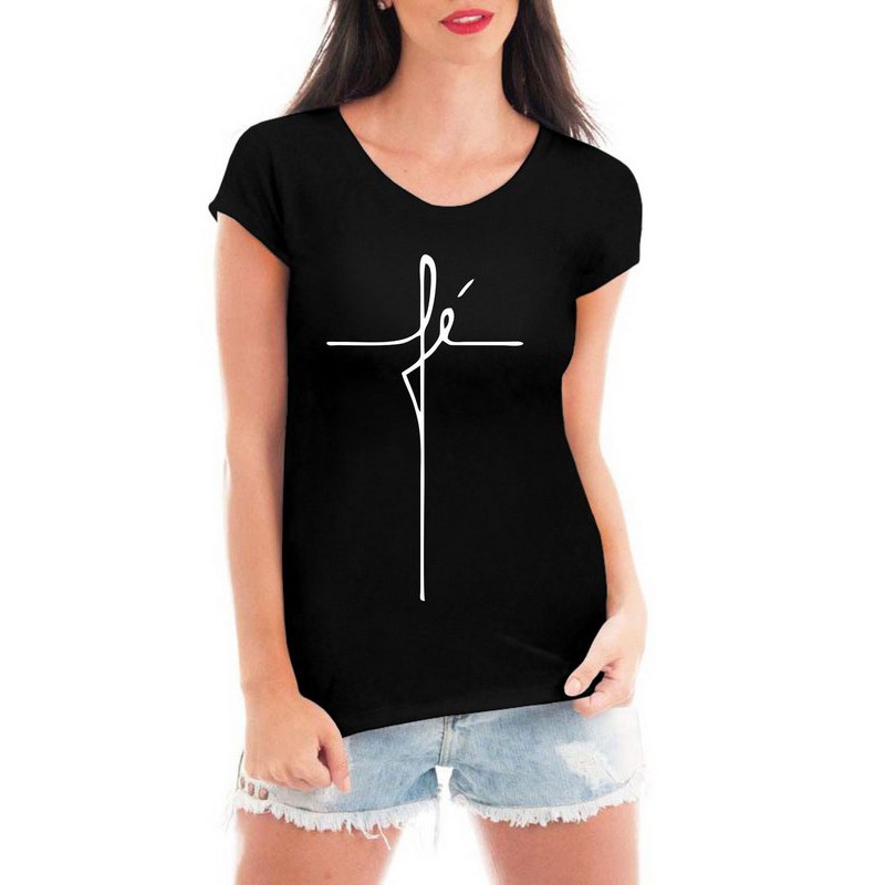 Camiseta Feminina Escrito F Cruz Religiosa Gospel Evang lica Very well made.