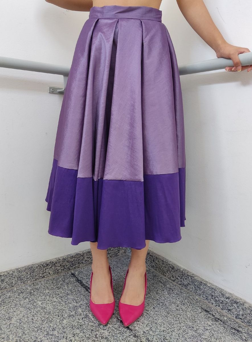 Saia Midi em Tafet Rodada com Pregas Roxo com Violeta Saia Very well made.
