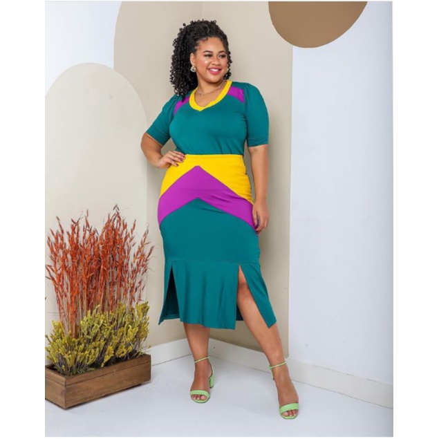 Conjunto Plus Size Saia E Blusa Em Viscolycra Santo Luk Moda Very well made.