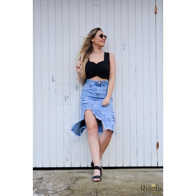 Saia feminina jeans modelo sereia destroyed rasgada R 199.00 Very well made.