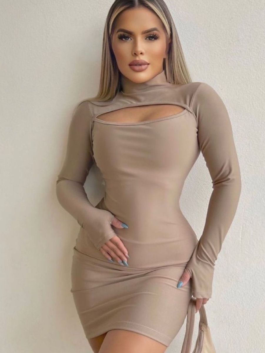 Thybstore Vestido feminino colado midy abertura lateral manga longa inverno casual basico sensual elegante festas longo Very well made.