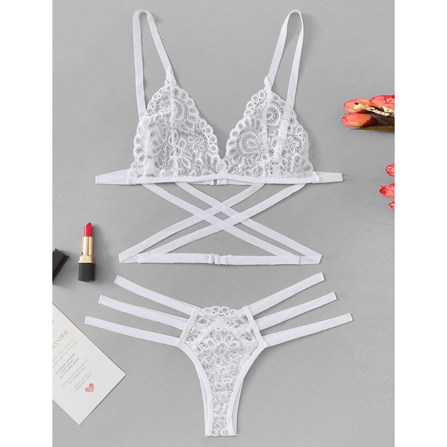 Conjunto lingerie calcinha top 2p s renda fita branco roupa ntima Very well made.