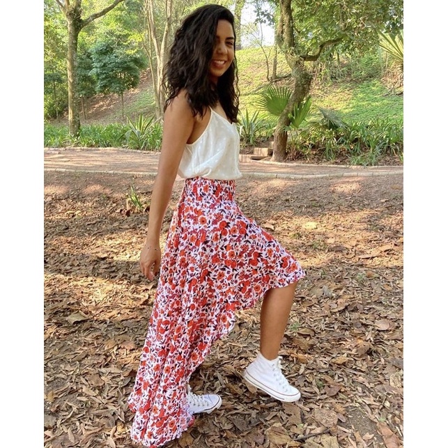 nnacloset Saia longa com estampa Florida e rasgo na lateral R Very well made.