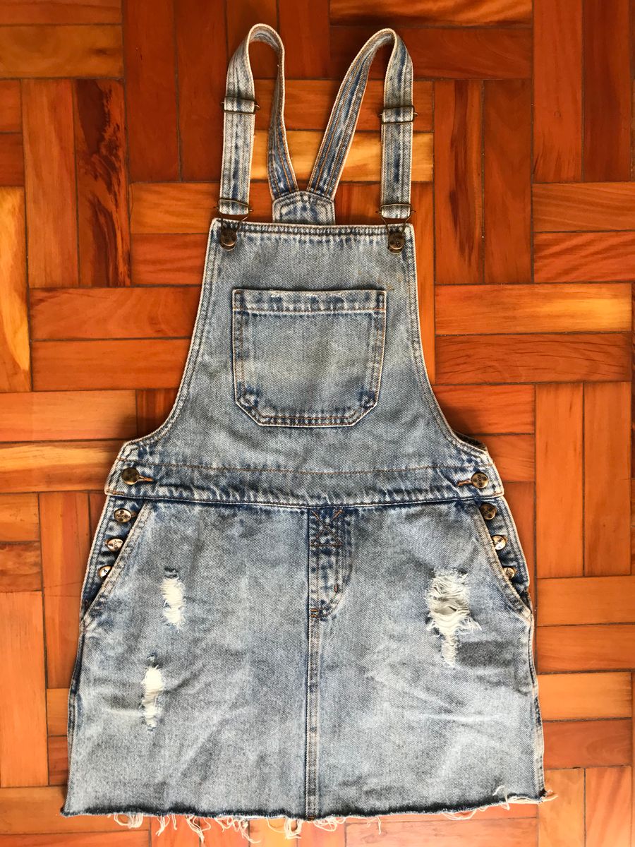 Macaquinho Jardineira Saia Jeans Barra Desfiada Rasgado Al a Very well made.