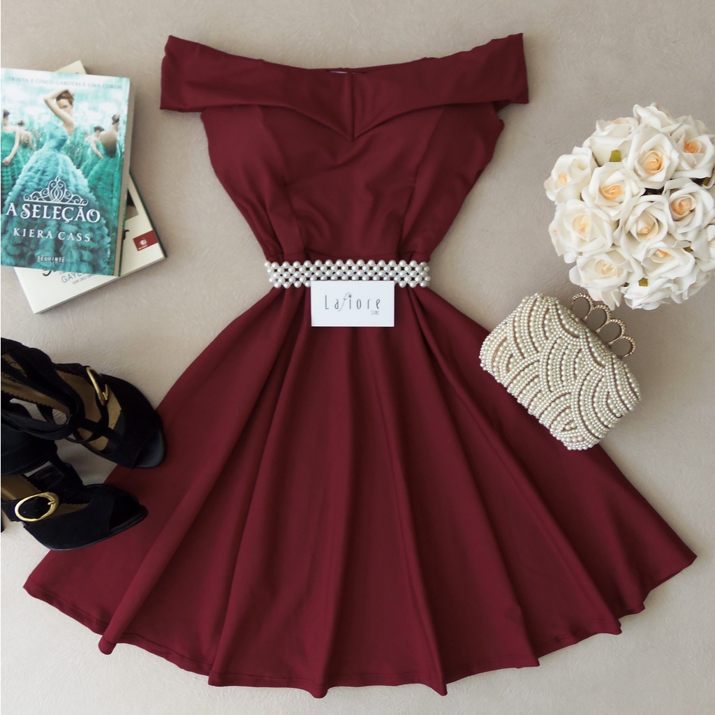 Vestido Vinho Rodado Cigana Ombro A Ombro Bord Saia Rodada Very well made.