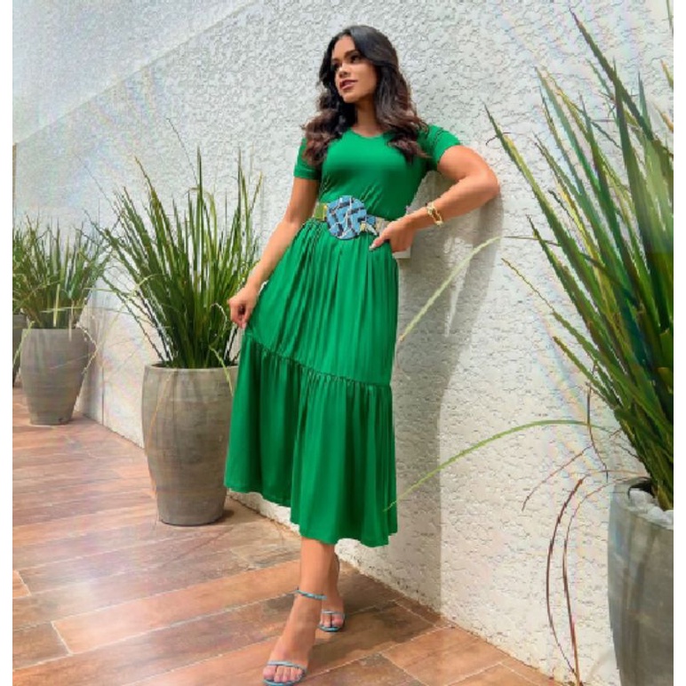 Vestido midi longuete soltinho com manga suede moda feminina Very well made.