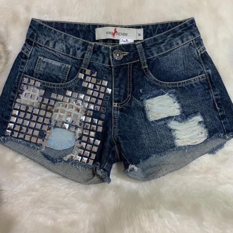 Shorts bordados aplica o de pedrarias shorts customizados Very well made.