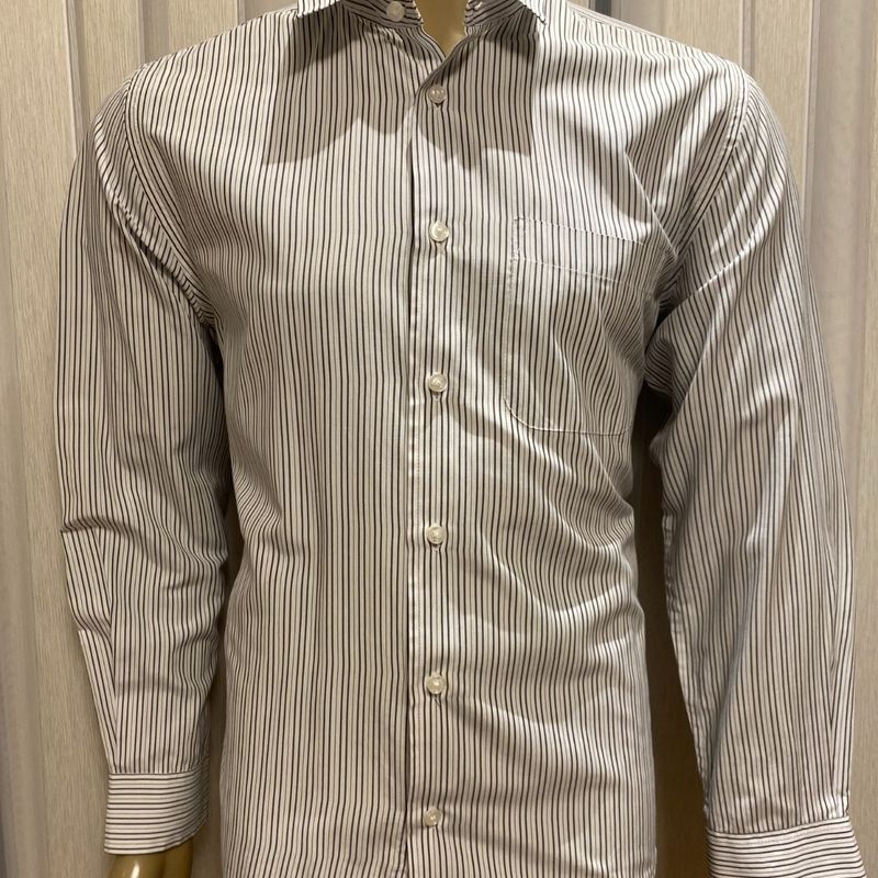 Camisa social masculina Tam 2 Fatto a Mano com bolso frontal modelo puro algod o listrada. Usada Desapego Brech Bazar Very well made.