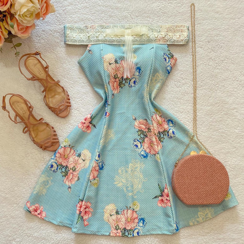 Vestido God Ombro A Ombro Estampado Azul Pra Festa Promo o Very well made.
