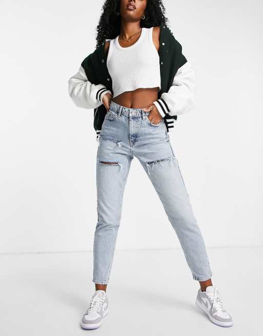 Topshop Mom jeans in mid wash blauw Very well made.
