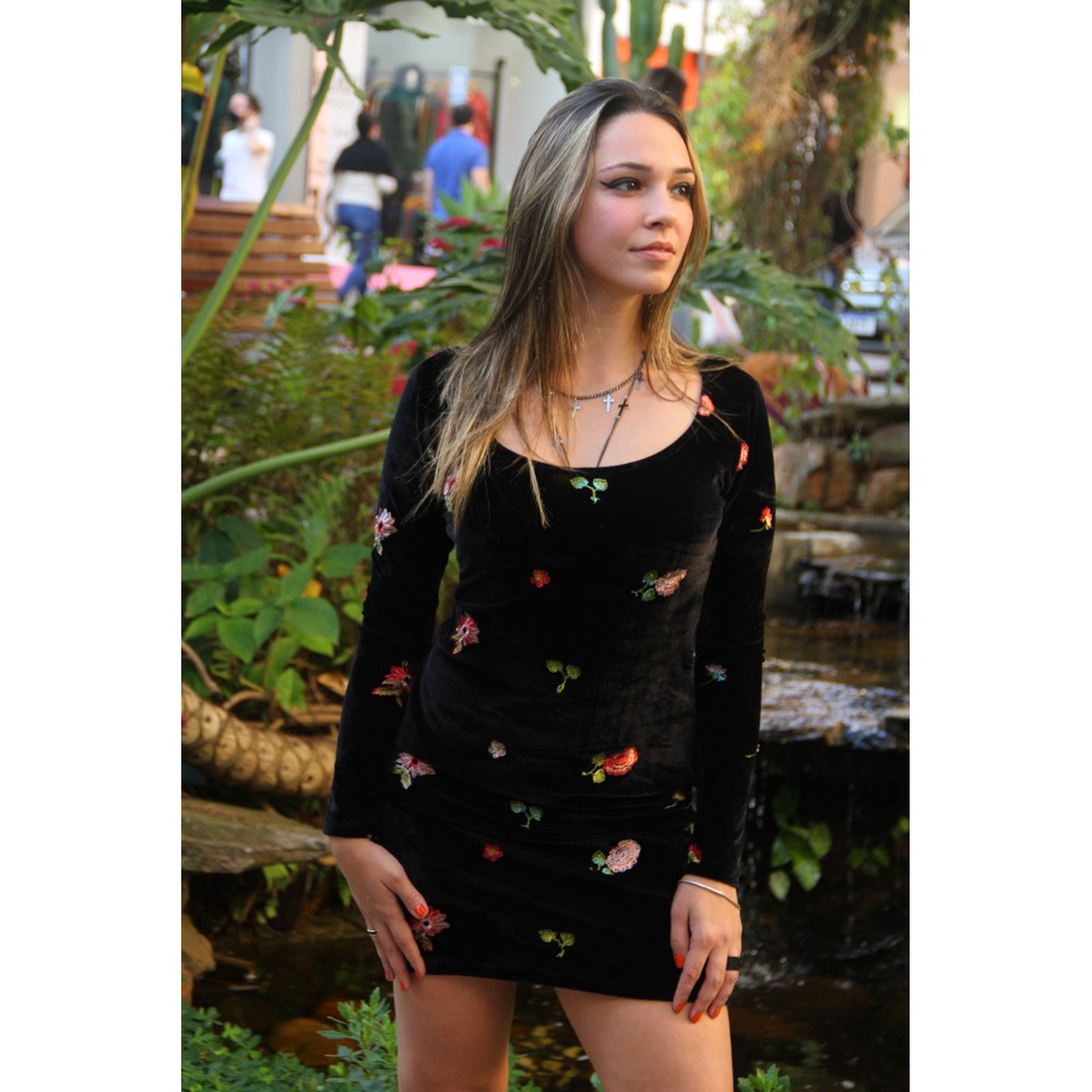 Vestido Curto Veludo Bordado Preto My Place Very well made.