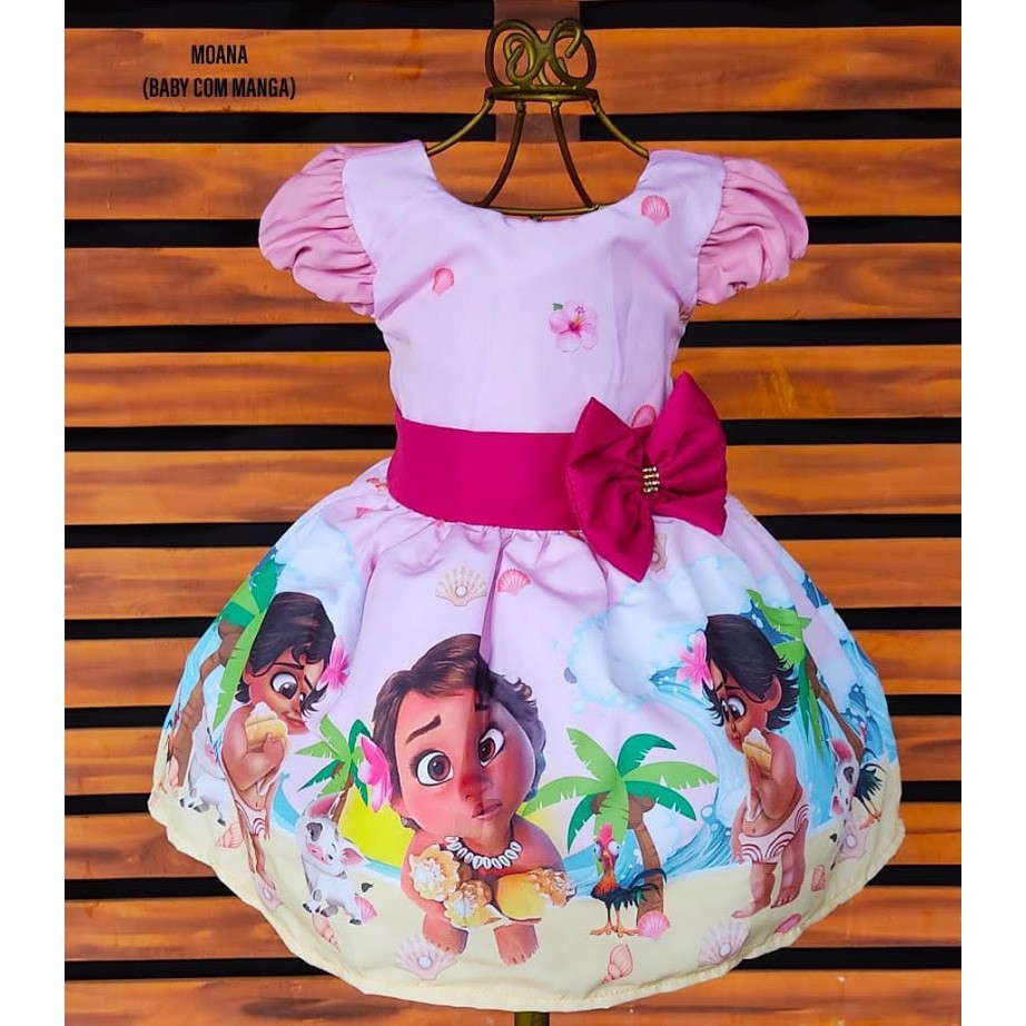 Vestido Tem tico Infantil Festa Moana Baby Pink Very well made.