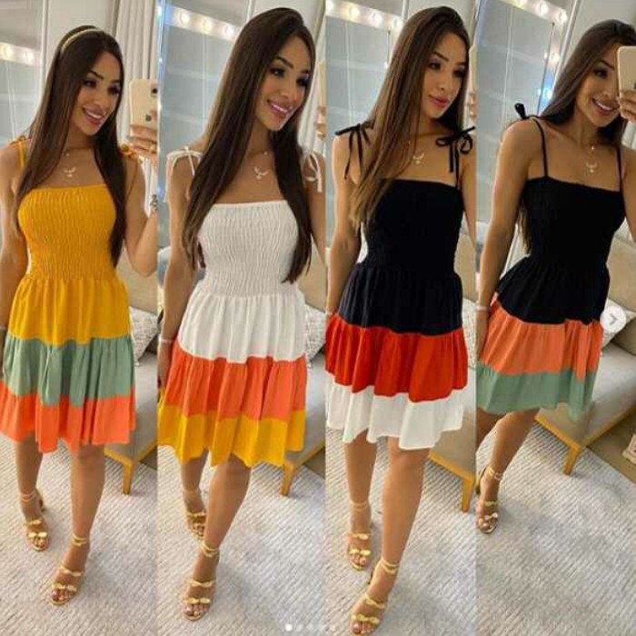 Vestido Colorido at o joelho com lastex no busto Plus Size G1 ao G3 Very well made.