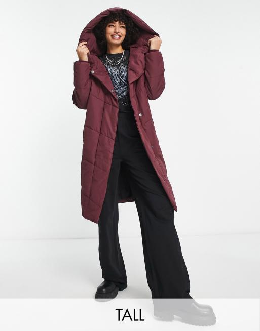 Noisy May Tall longline padded coat with hood in dark red Very well made.