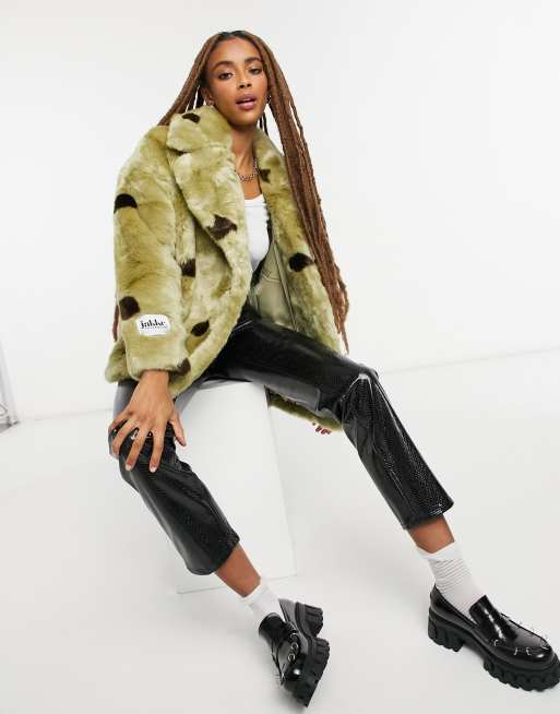 Jakke katie longline faux fur coat in abstract face print Very well made.