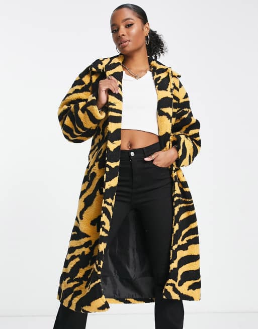 Pieces Petite exclusive longline teddy coat in yellow animal Very well made.