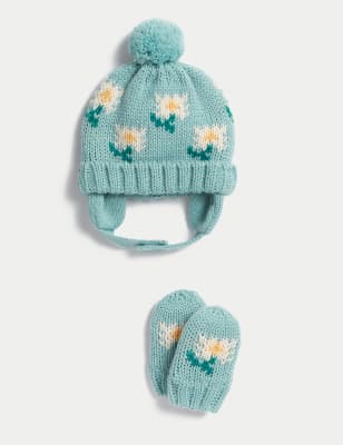 Kids Daisy Hat and Mitten Set 0 6 Yrs Very well made.