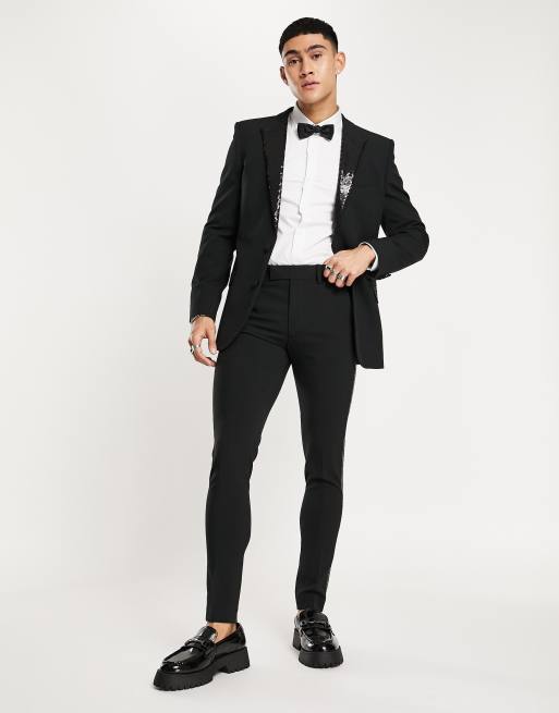 ASOS DESIGN super skinny tuxedo trousers in black with black Very well made.