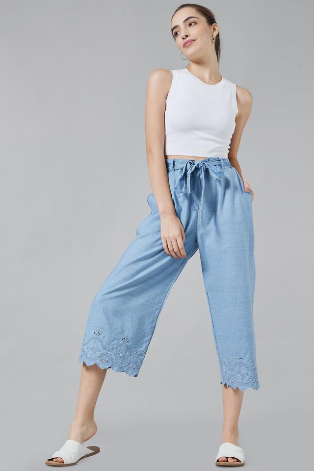 Medium Blue Print Ankle Length Casual Women Regular Fit Palazzo Very well made.