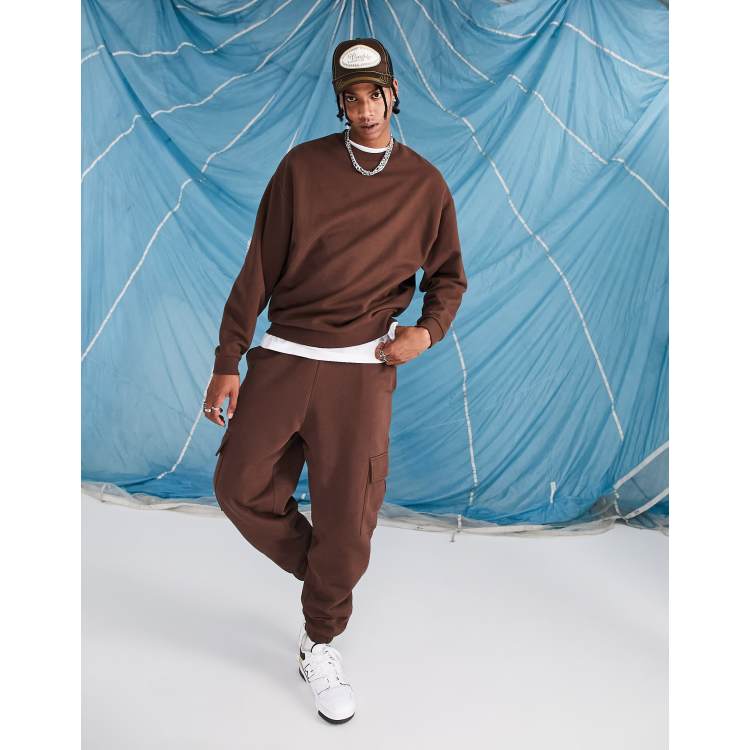 ASOS DESIGN oversized joggers with cargo pocket in chocolate brown Very well made.