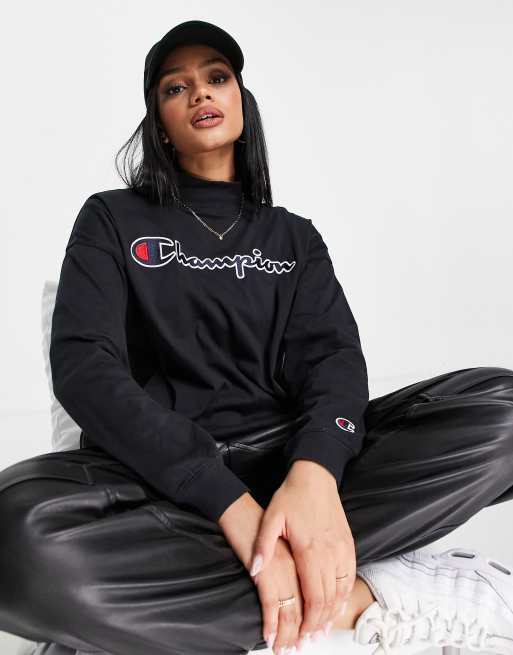 Champion large logo high neck sweatshirt in black ASOS Very well made.