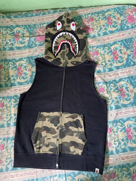 Bape BAPE Shark Camo full zip hoodie Vest Black Grailed Very well made.
