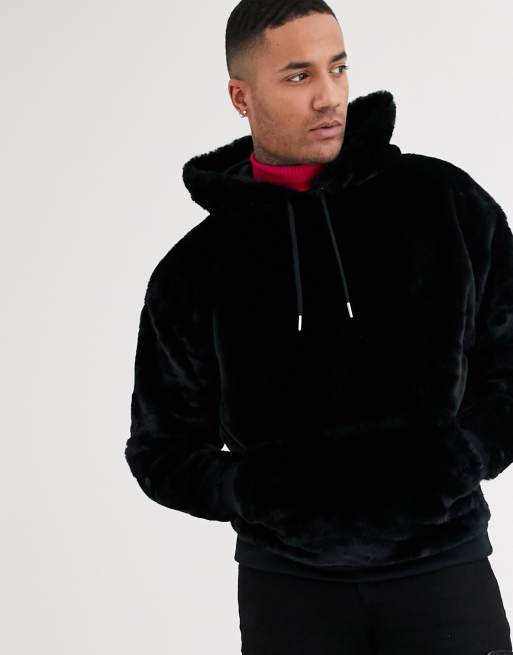 ASOS DESIGN oversized faux fur hoodie in black Very well made.
