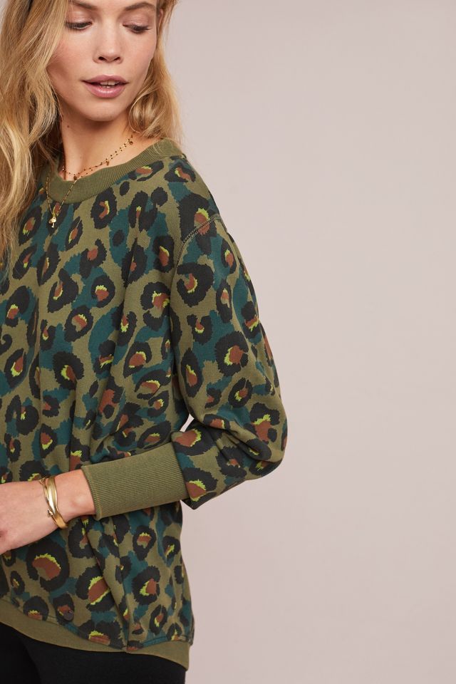 by Anthropologie Ethan Crew Neck Leopard Print Sweater Green Gray Brown Size M eBay Very well made.