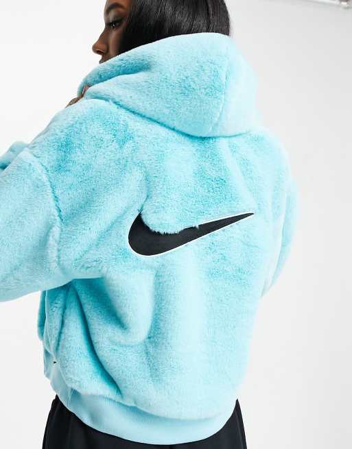 Nike Essentials faux fur hooded jacket in aqua ASOS Very well made.