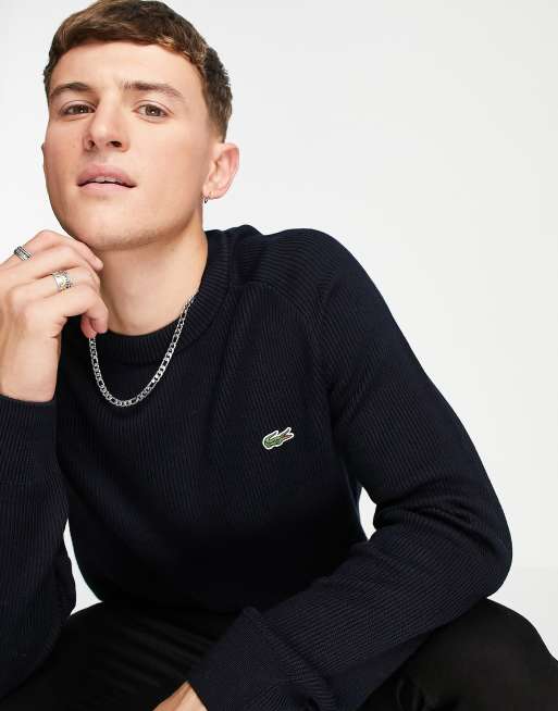 Lacoste logo crew neck cotton knit sweater in black ASOS Very well made.