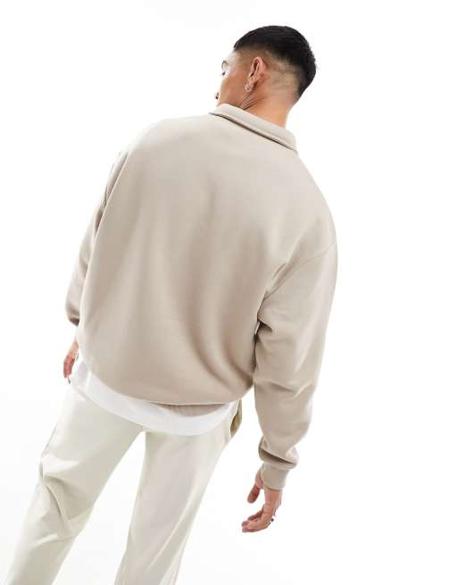 ASOS DESIGN oversized sweatshirt with polo neck in beige Very well made.