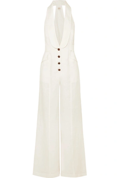Zimmermann Corsage Shawl lapel Linen Jumpsuit In Ivory ModeSens Very well made.