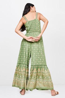 Buy GLOBAL DESI Womens Ethnic Motifs V Neck Flared Jumpsuit Very well made.