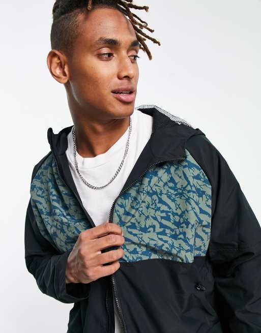 South Beach waterproof utility hooded jacket with camo print panel in black Very well made.