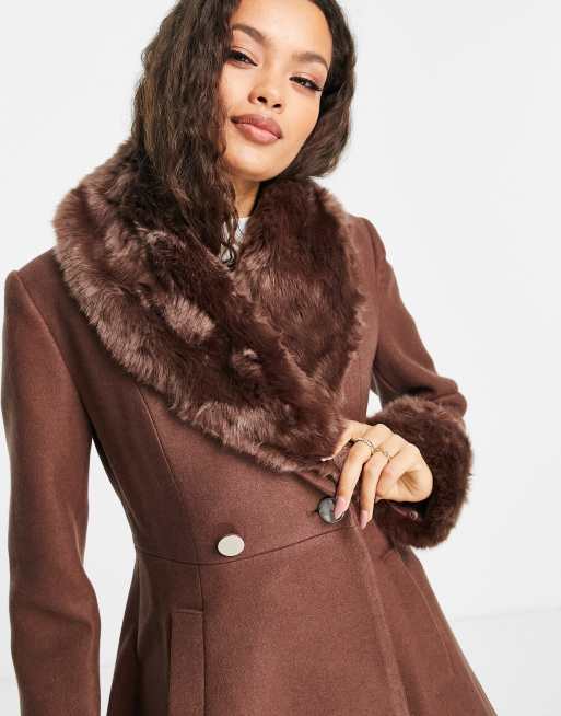 Forever New Petite faux fur collar coat in chocolate brown Very well made.