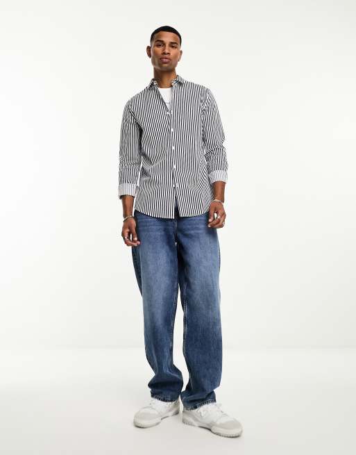 ASOS DESIGN slim fit striped shirt in navy ASOS Very well made.
